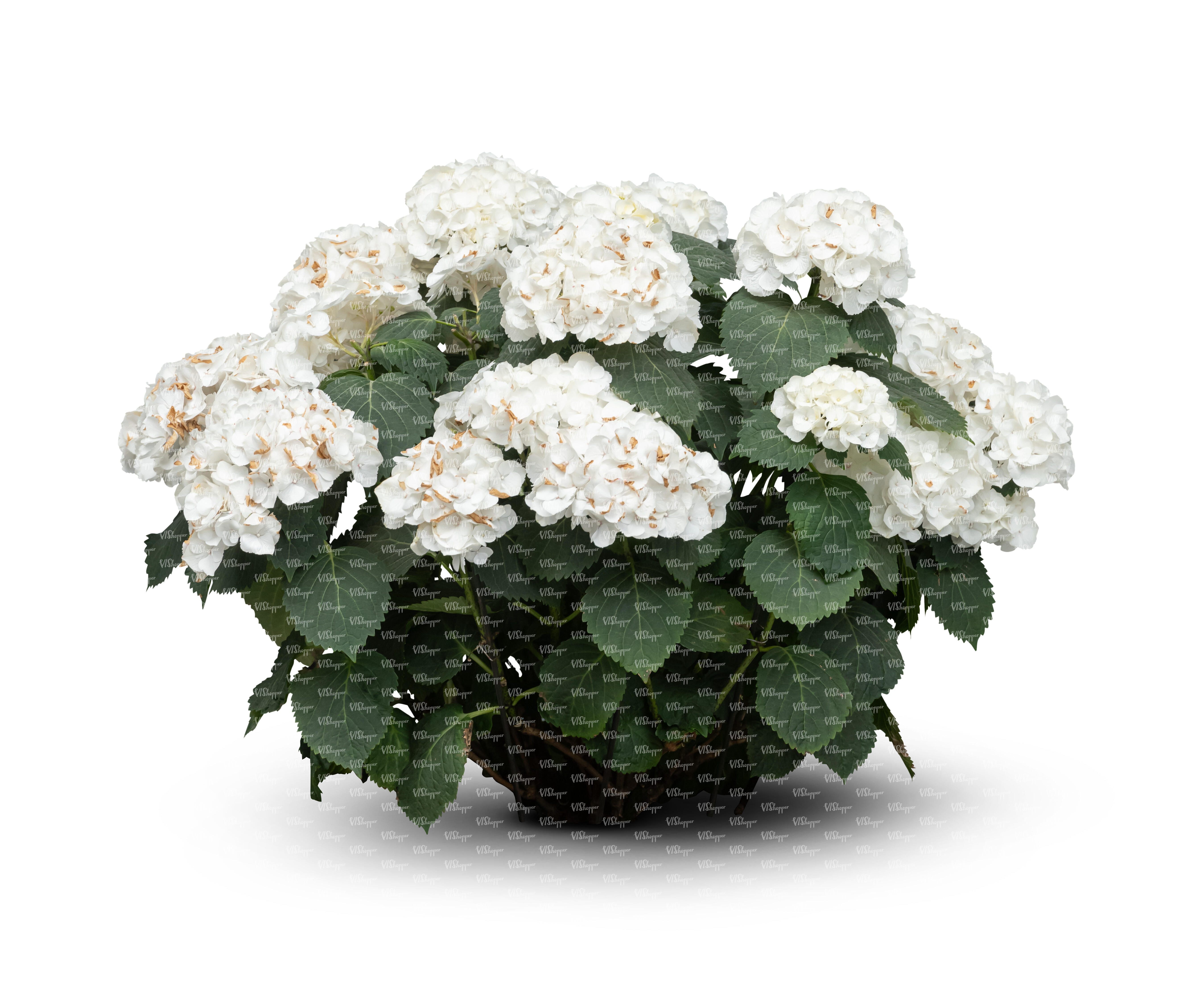 • cut out sidelit bush and a plants in clay pots