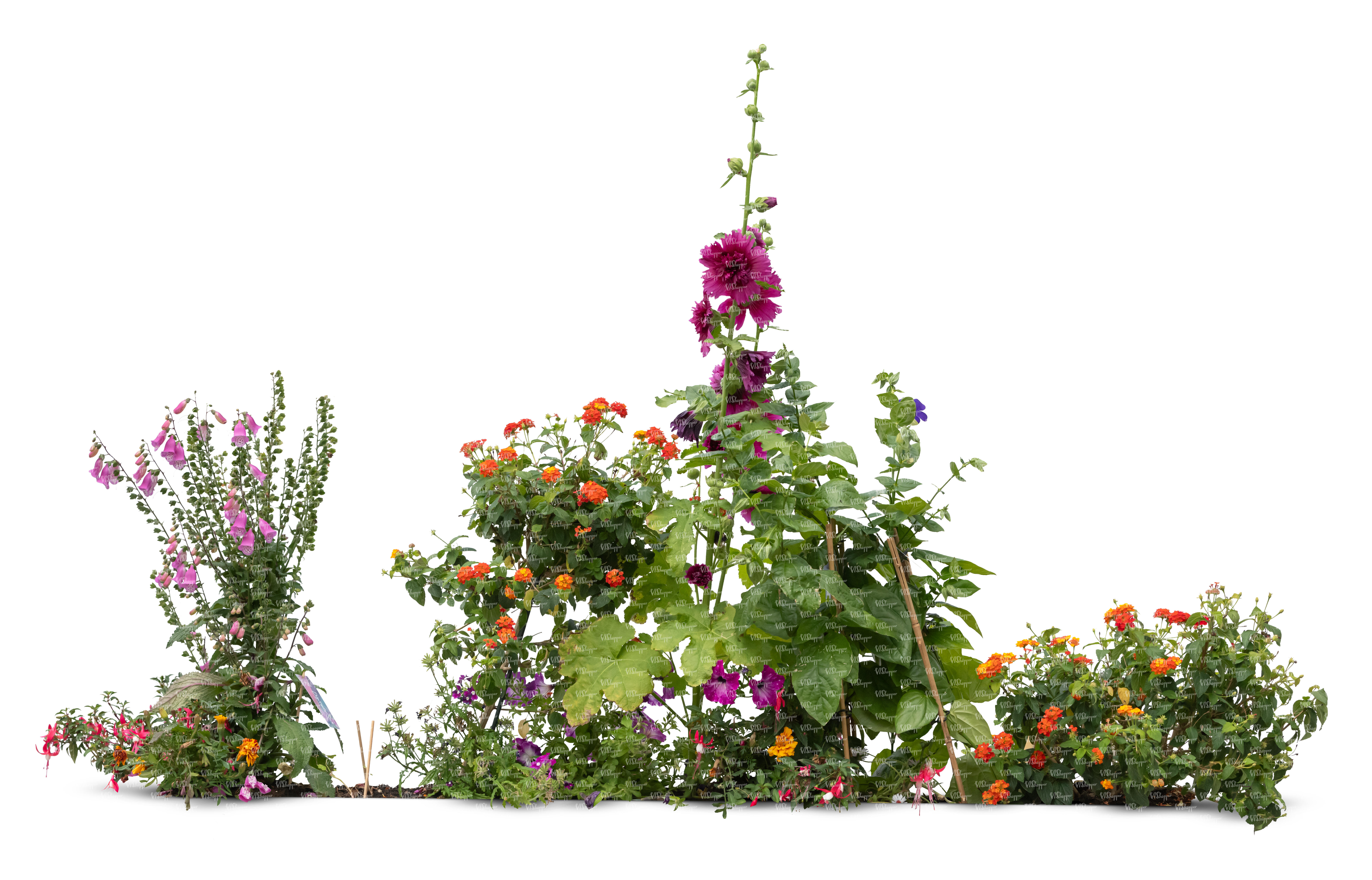 • foreground in sunlight with benches and flowerbeds on separate layers