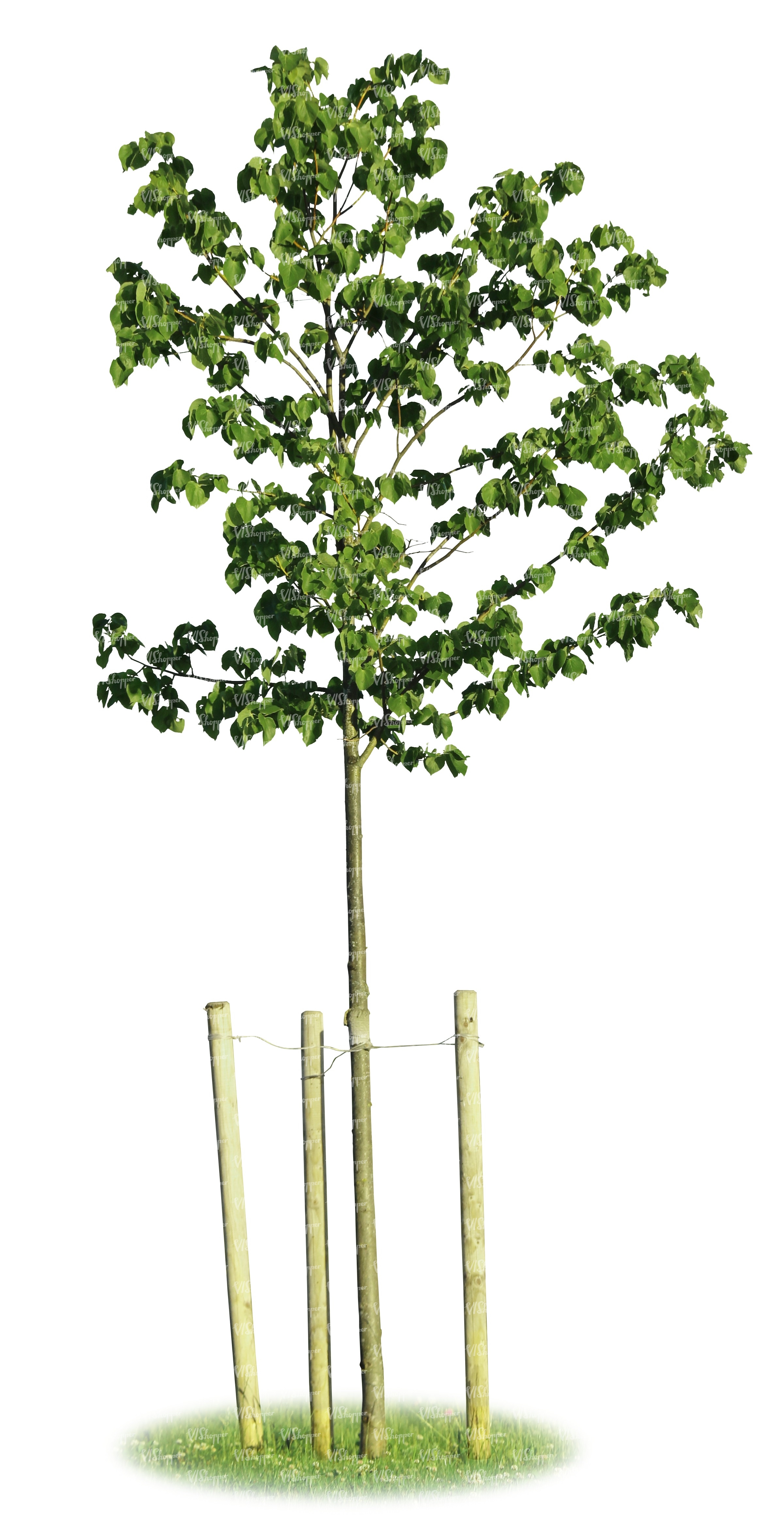 cut out young tree with a support crate