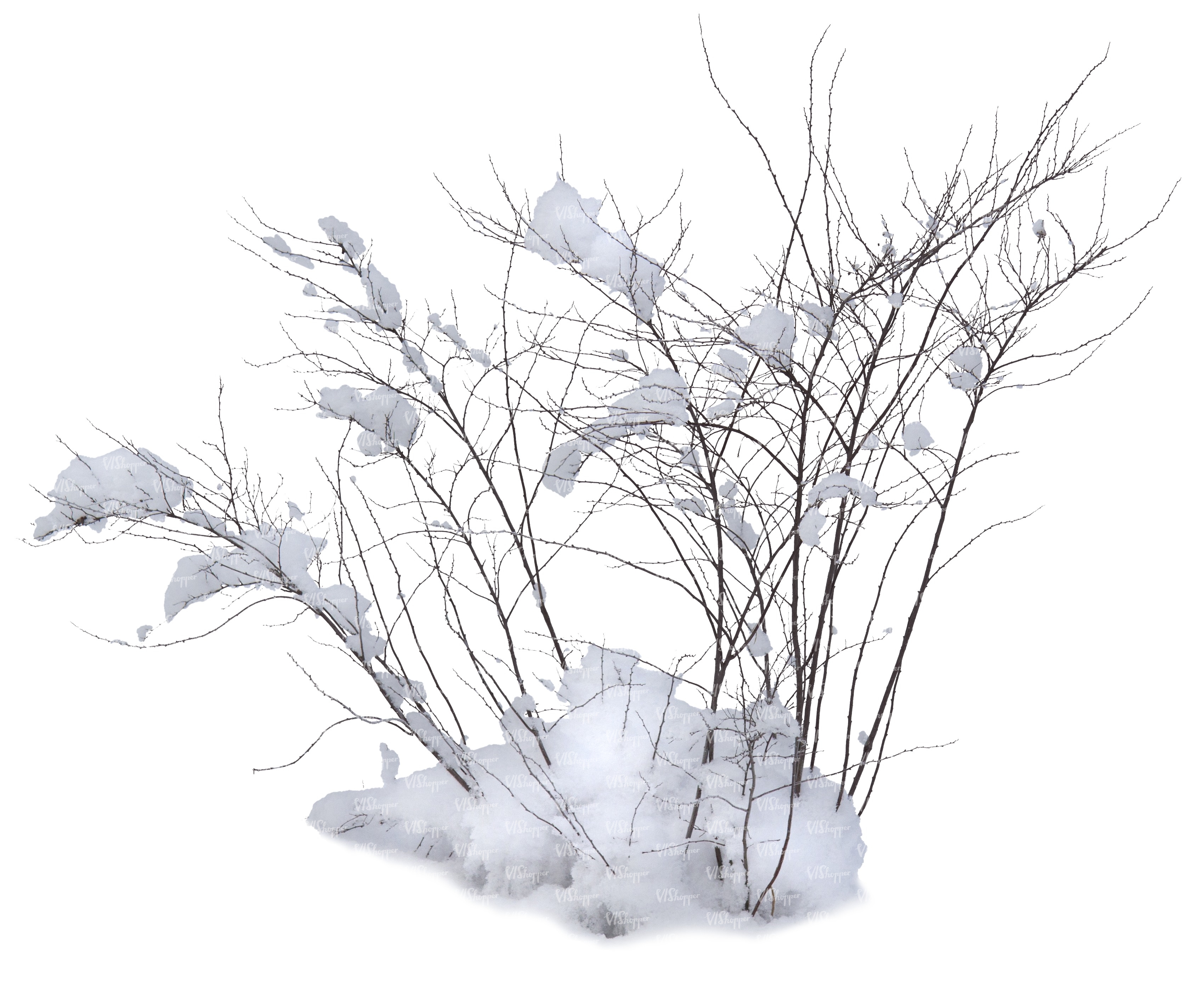 • leafless bush covered with snow