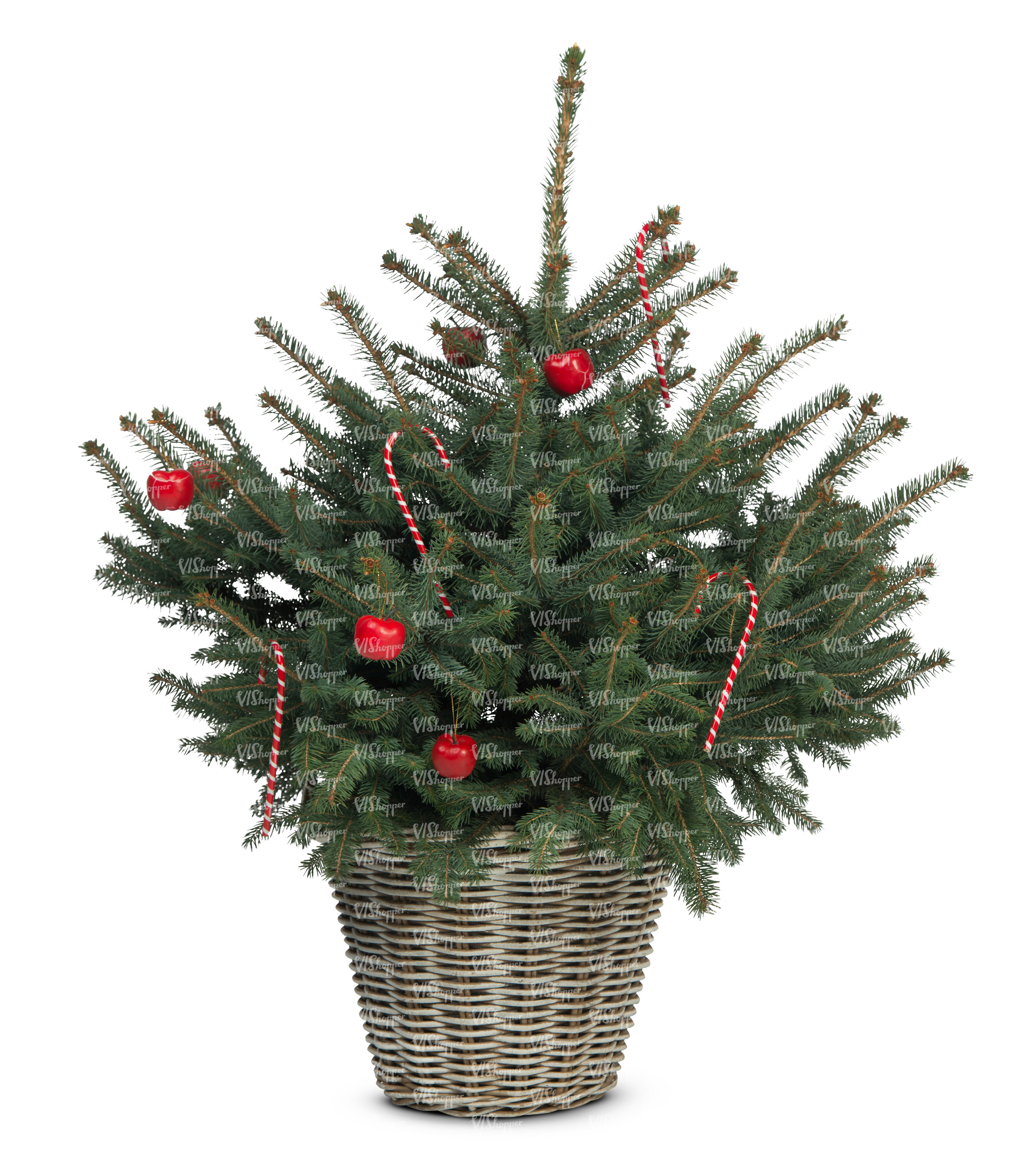 • cut out decorated small christmas tree in a basket