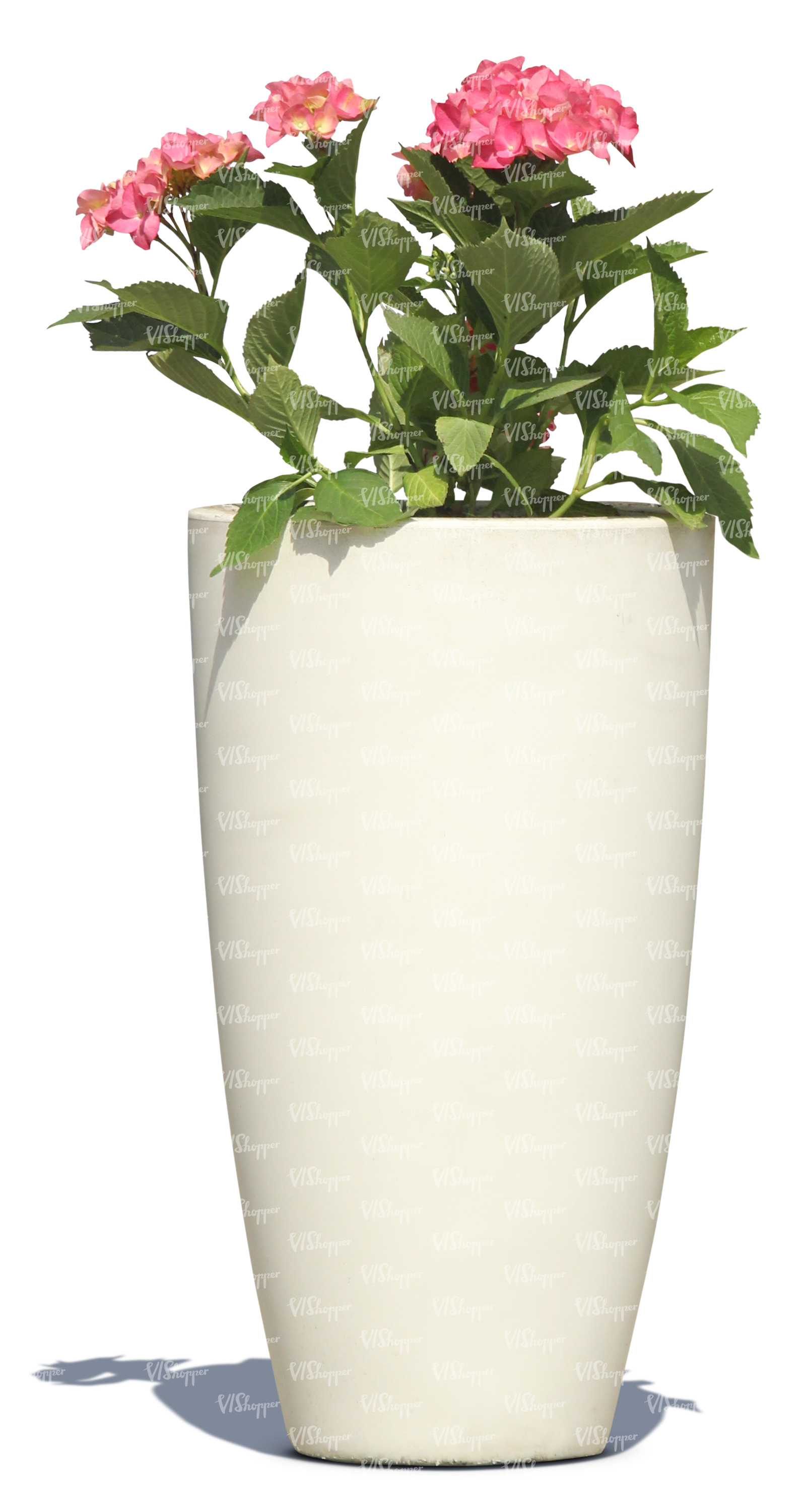 • pink blooming flower in a white pot