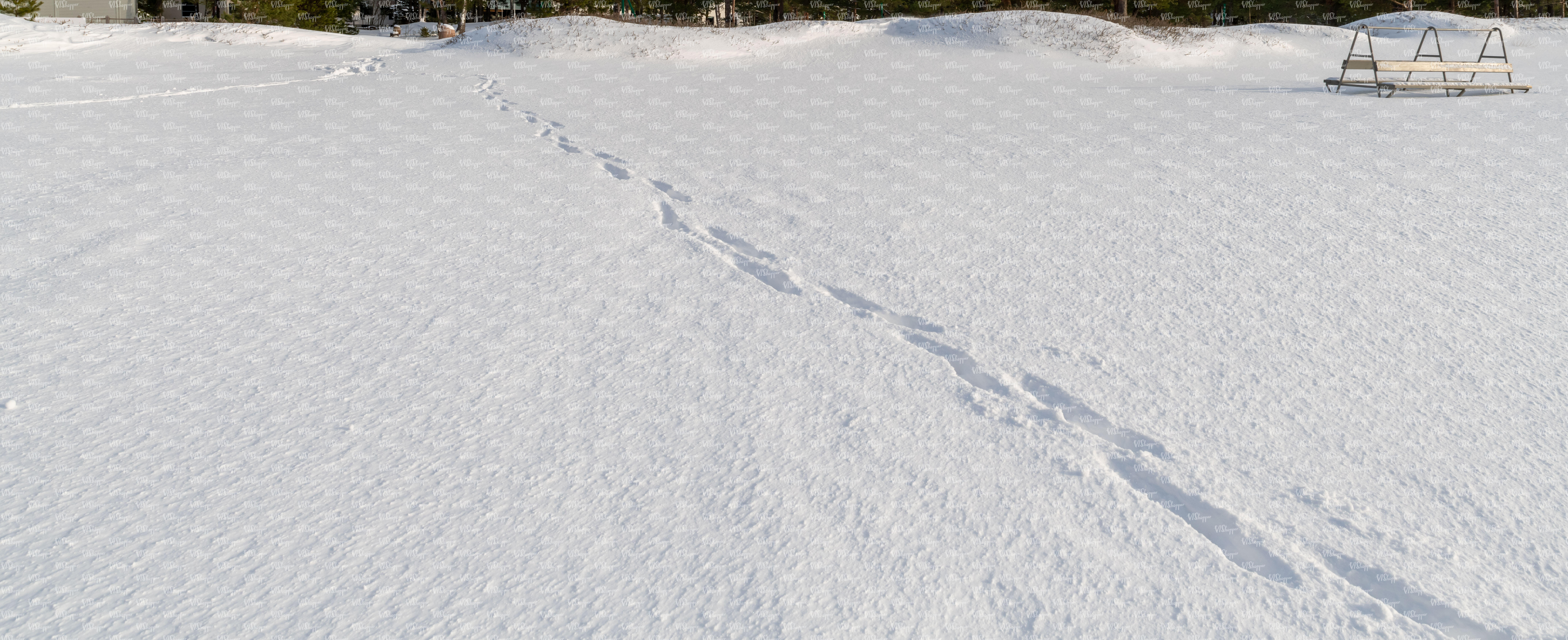 field of snow with a single row of footprints