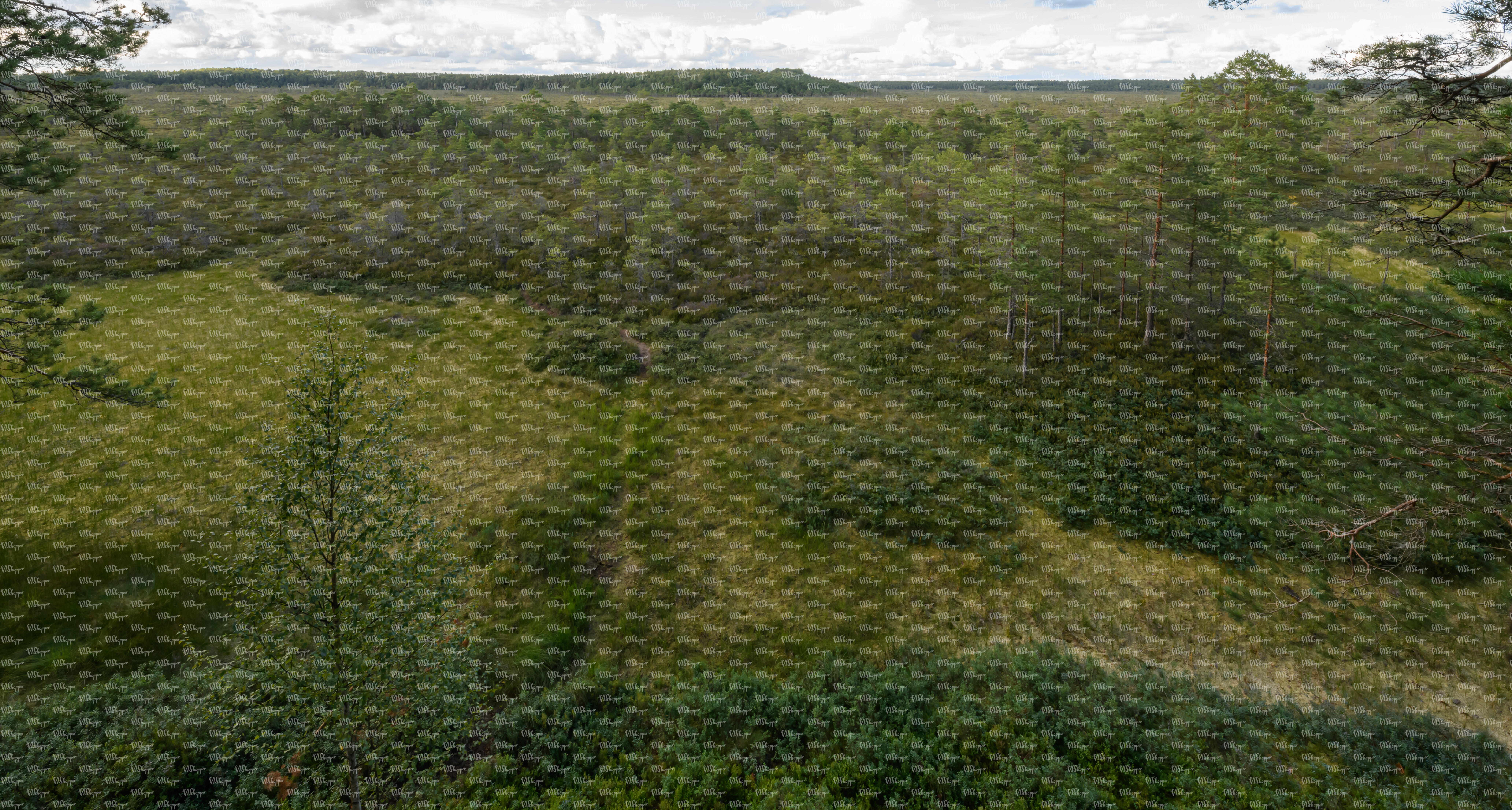• aerial view of a bog forest