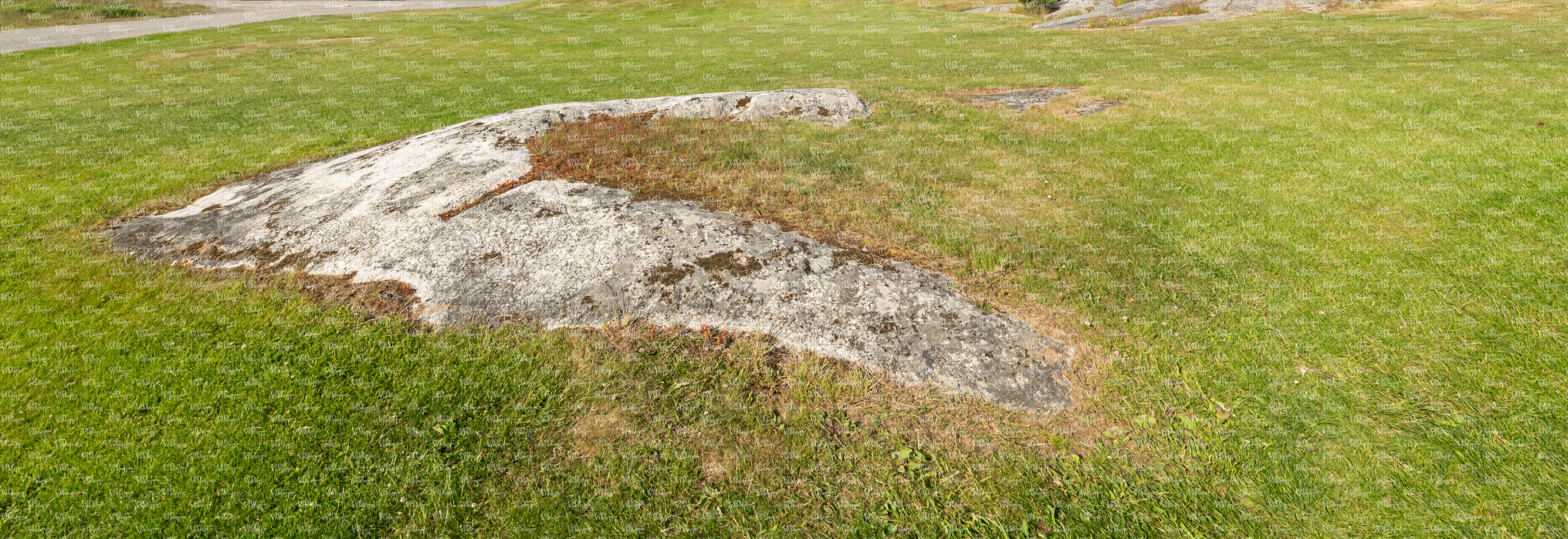 • mowed lawn with a rocky patch