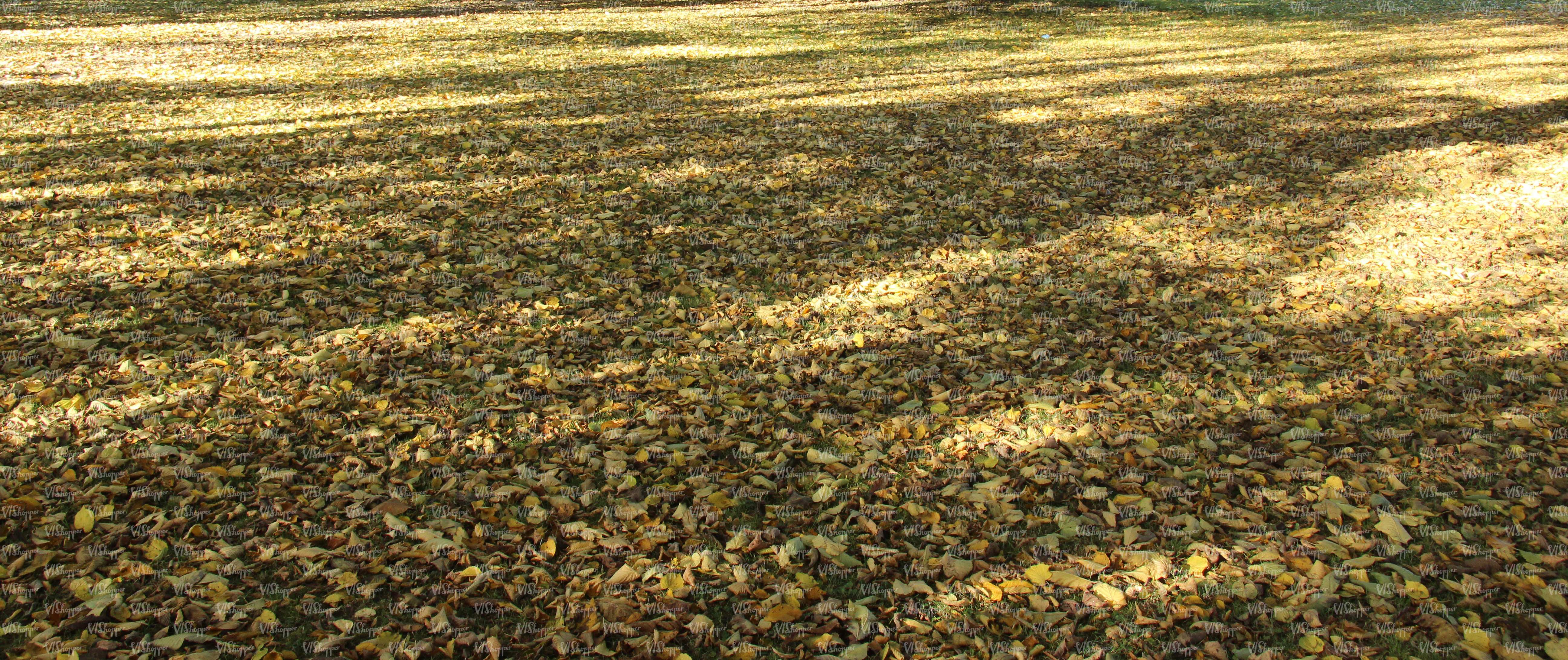 • short grass ground with large tree shadows